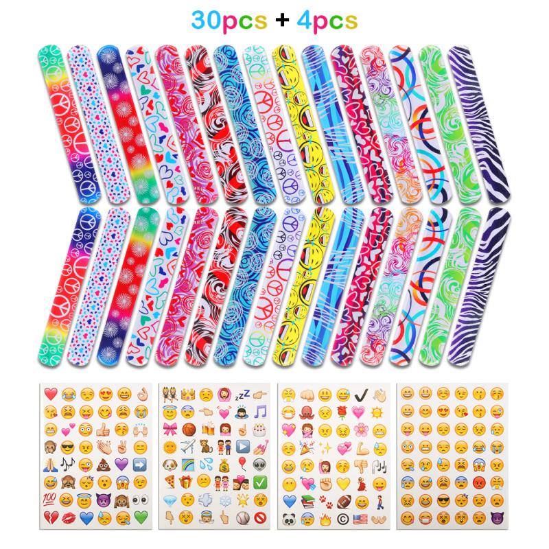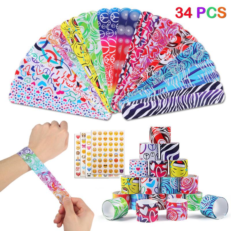 Twister.CK Набор сувениров для вечеринки, 34 шт., Браслеты Slap, 30 шт. (15 дизайнов) и 4 наклейки, игровые призы,