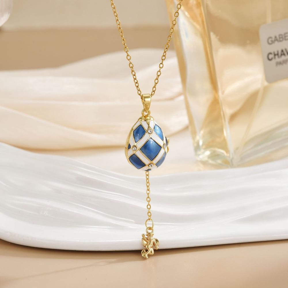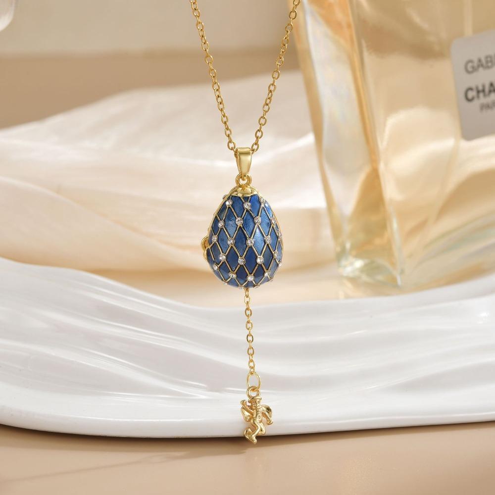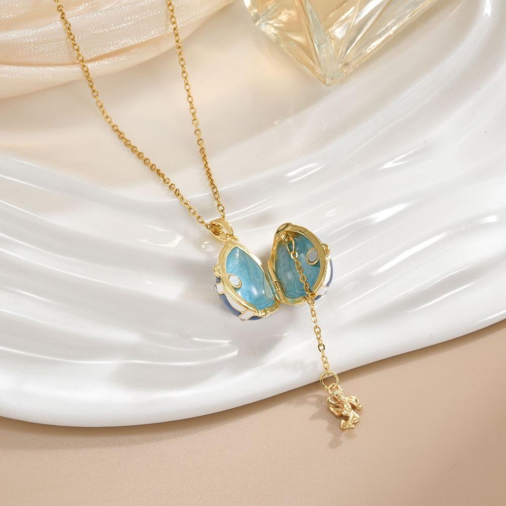 Цепочка-чокер в виде пасхального яйца с эмалью, навесная цепочка на ключицу, винтажное открывающееся и закрывающееся ожерелье в подарок