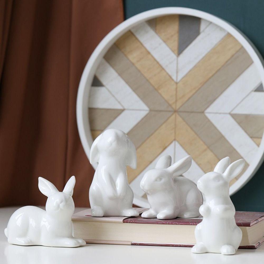 Простая статуэтка кролика Мини-скульптура животного Настольное украшение Фигурка кролика для детей