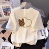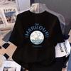 Футболка из хлопка с короткими рукавами, женская, тонкая, летняя, корейская версия, модная, свободная, с круглым вырезом спереди и короткими рукавами, женская, универсальная