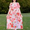 Плюс Размер Элегантные Женские Летние Платья Винтажная Одежда Короткие Рукава Свободные Длинные Платья