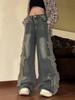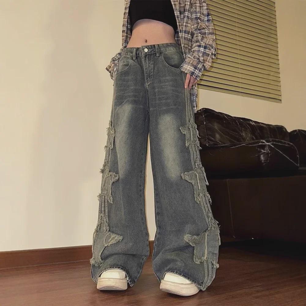 Женские джинсы с широкими штанинами в стиле ретро и нашивками в виде звезд - Коллекция 2024 года — купить товар онлайн с бесплатной доставкой по всему миру!
