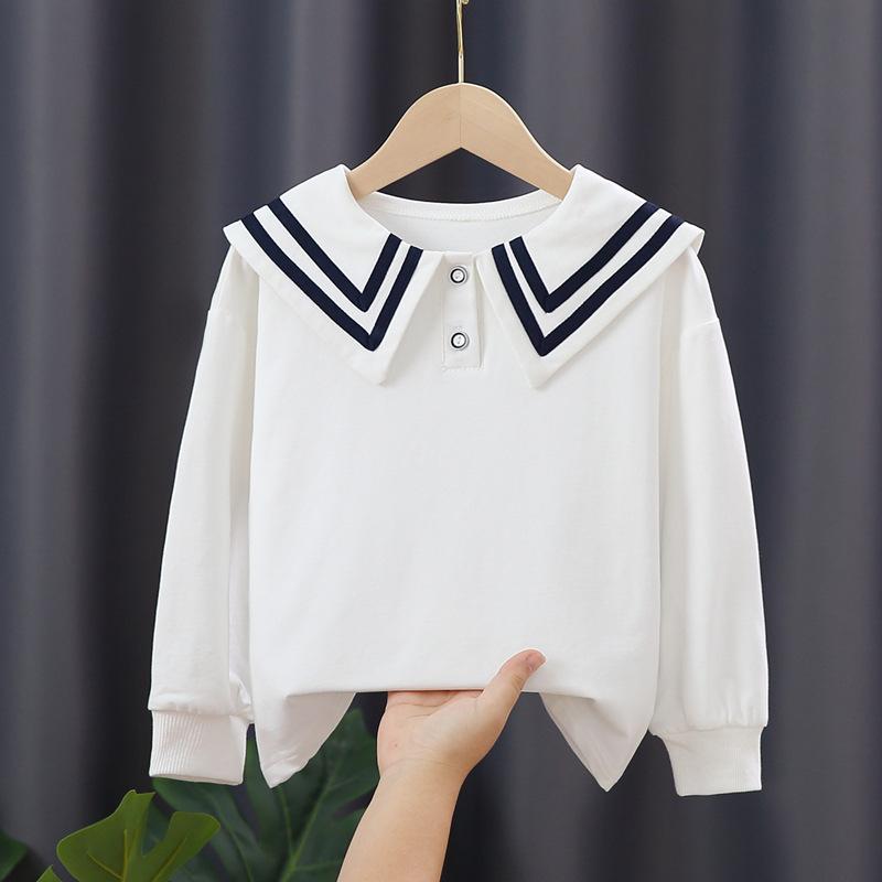 Нижняя рубашка с лацканами для девочек, весенне-осенняя корейская белая детская футболка — купить товар онлайн с бесплатной доставкой по всему миру!
