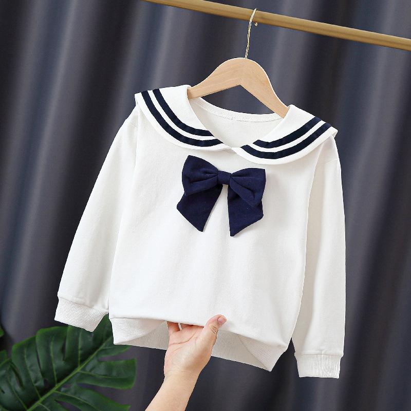 Нижняя рубашка с лацканами для девочек, весенне-осенняя корейская белая детская футболка