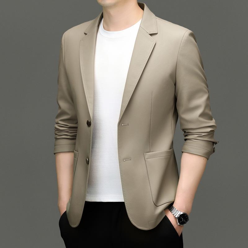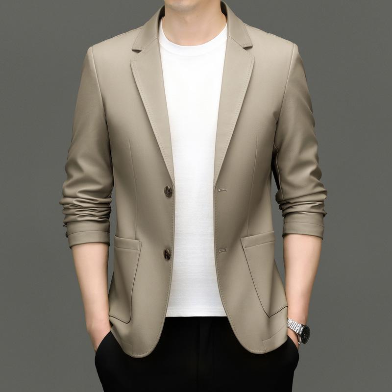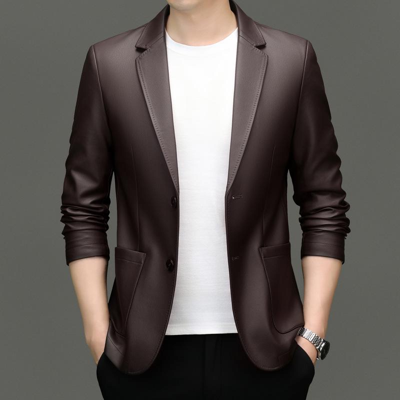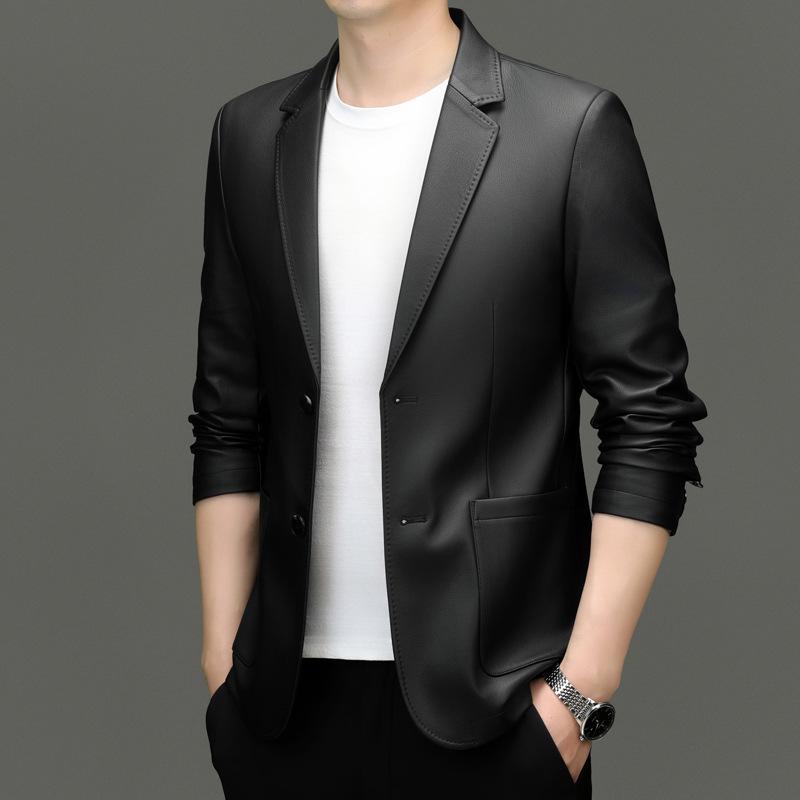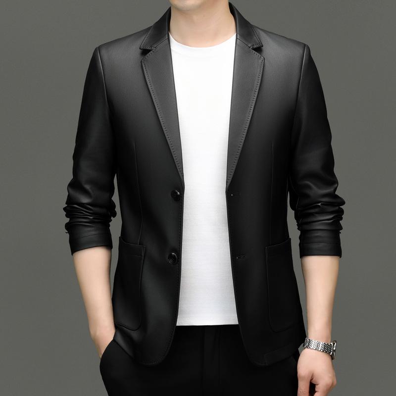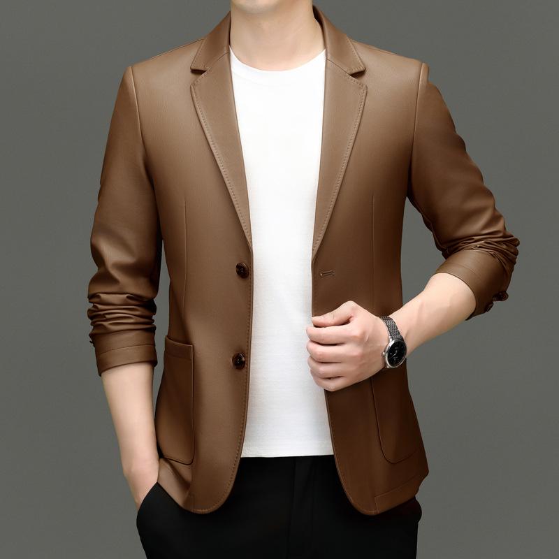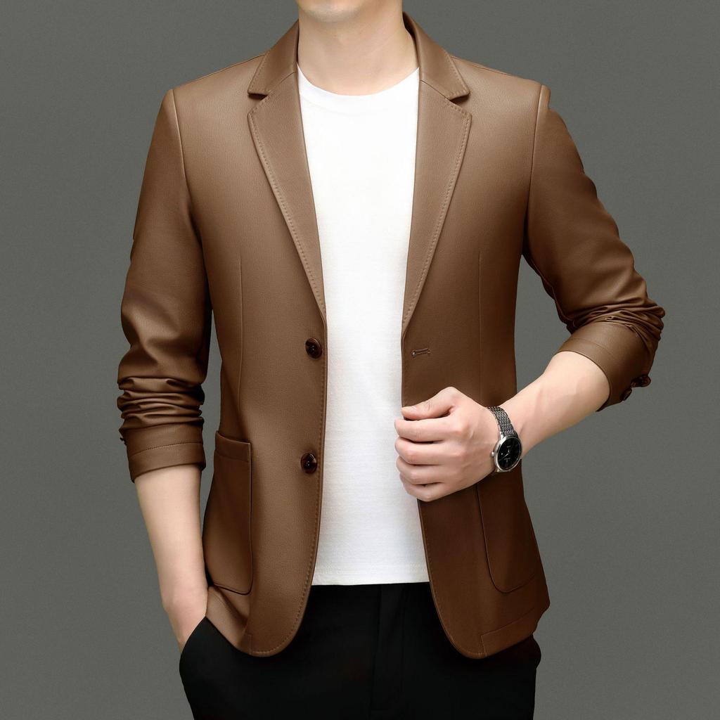 Мужской повседневный кожаный пиджак 2024 года – модная куртка на весну/осень для людей среднего возраста