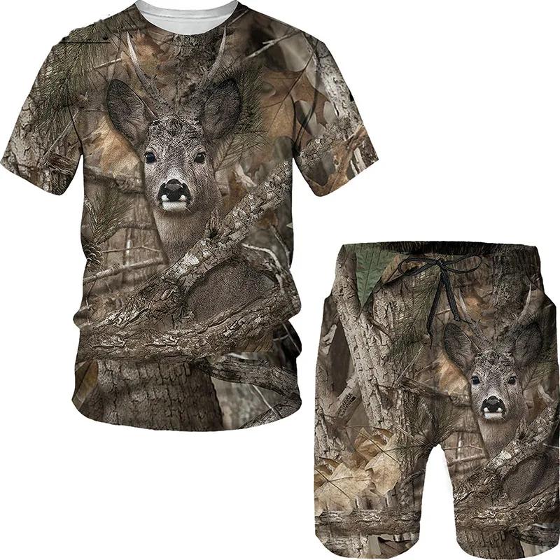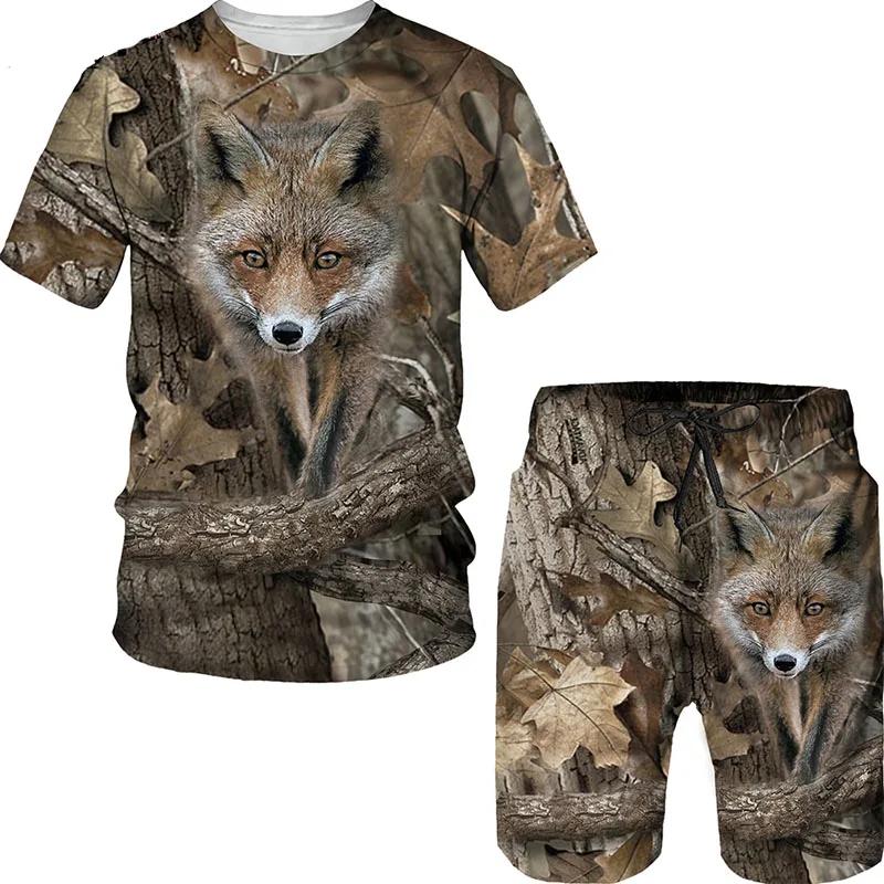 Животное Дикий Кабан Лиса 3D Принт 2 шт. комплект камуфляж охотничьи футболки комплекты модный мужской спортивный костюм с круглым вырезом свободный мужской свитшот