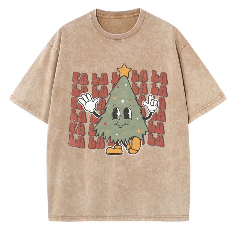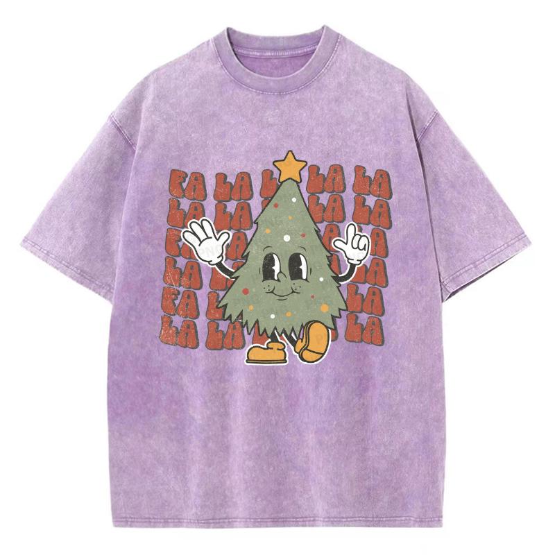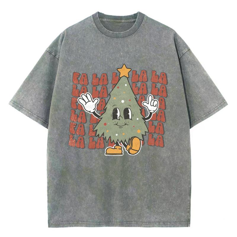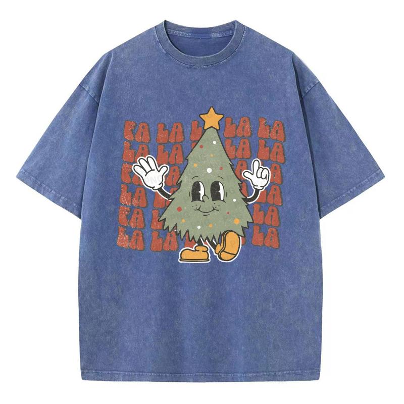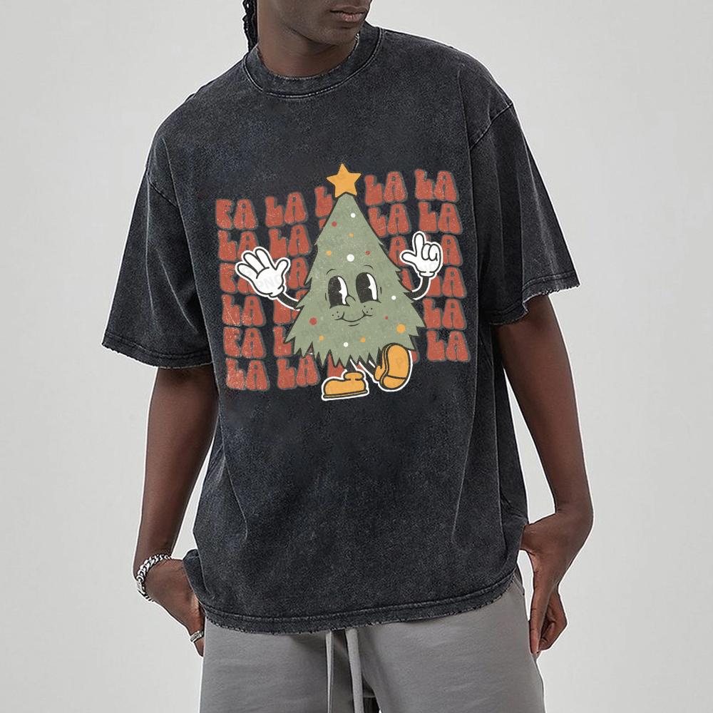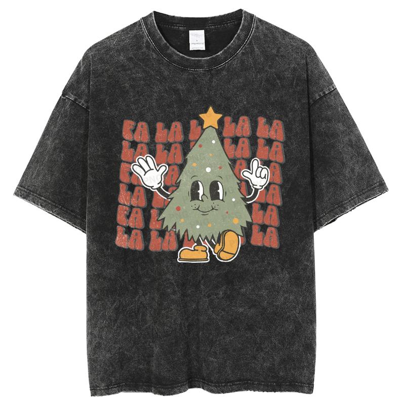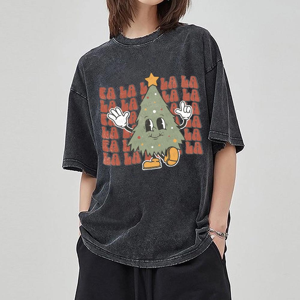 Женская футболка с принтом рождественской елки Y2K унисекс свободного покроя из выстиранного денима с коротким рукавом в стиле ретро в стиле Харадзюку