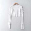 Футболка с длинным рукавом Dynamic Girl Slim Sexy, женская, с круглым вырезом, с открытыми рукавами и высокой талией, короткий топ