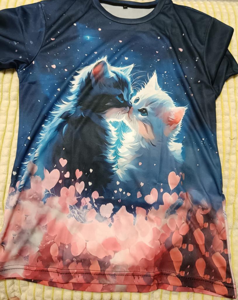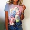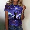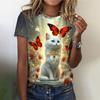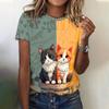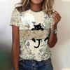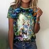 Женская мода 3D абстрактный рисунок кошки напечатаны короткие рукава топы 2024 новая женская одежда футболки летние свободные блузки и футболки