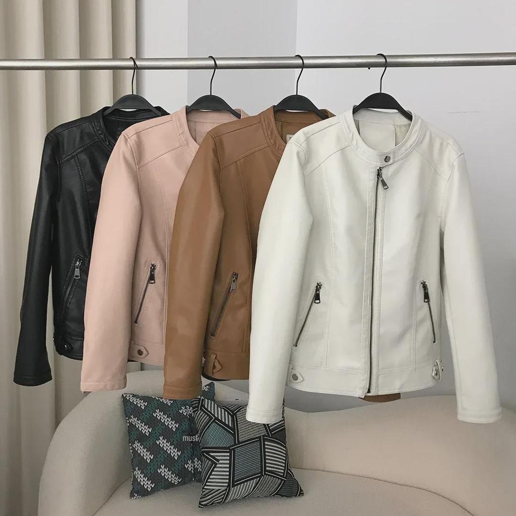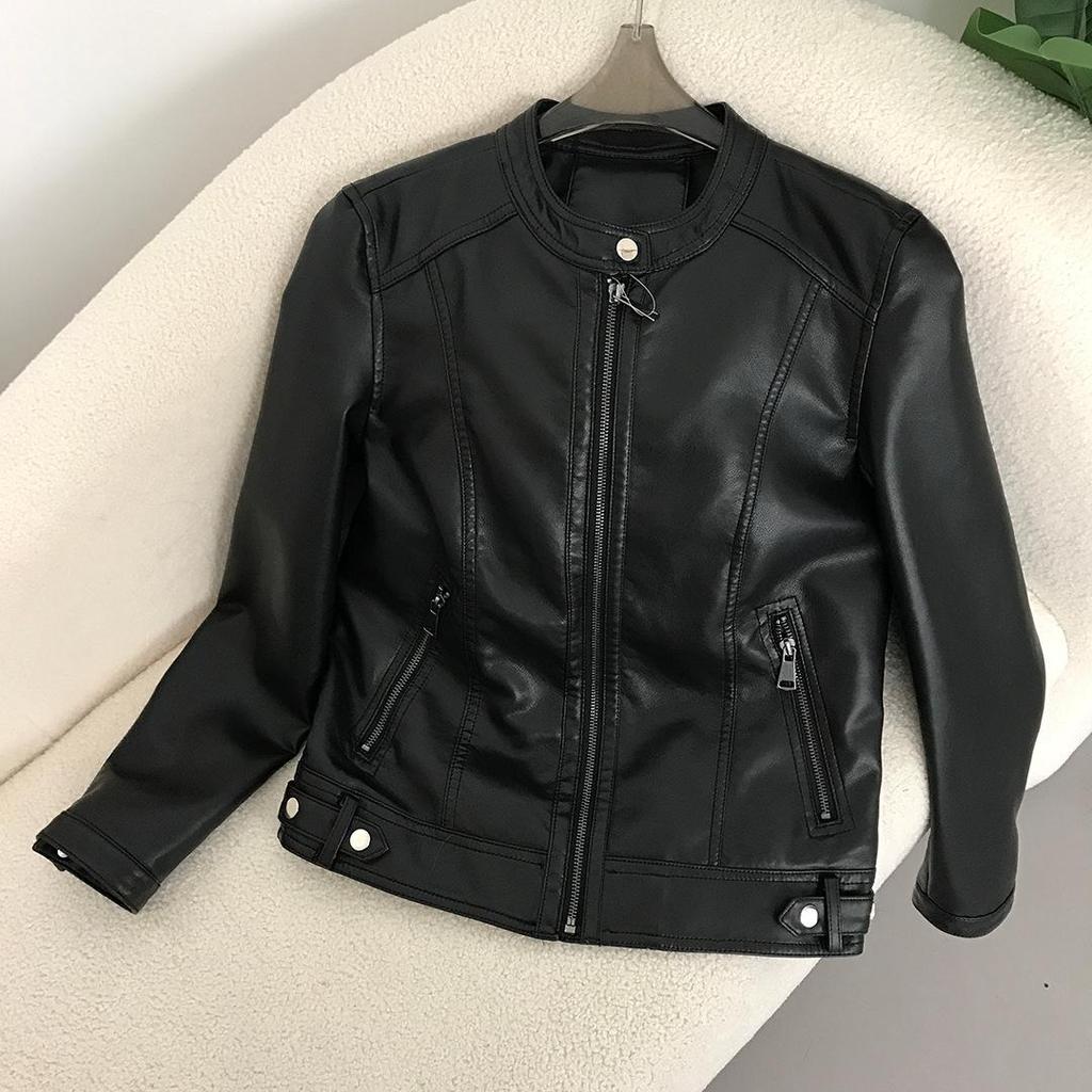 Женская куртка мотоцикла весна/осень в корейском стиле из искусственной кожи — короткая, модный дизайн
