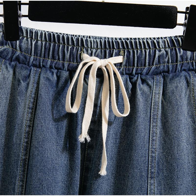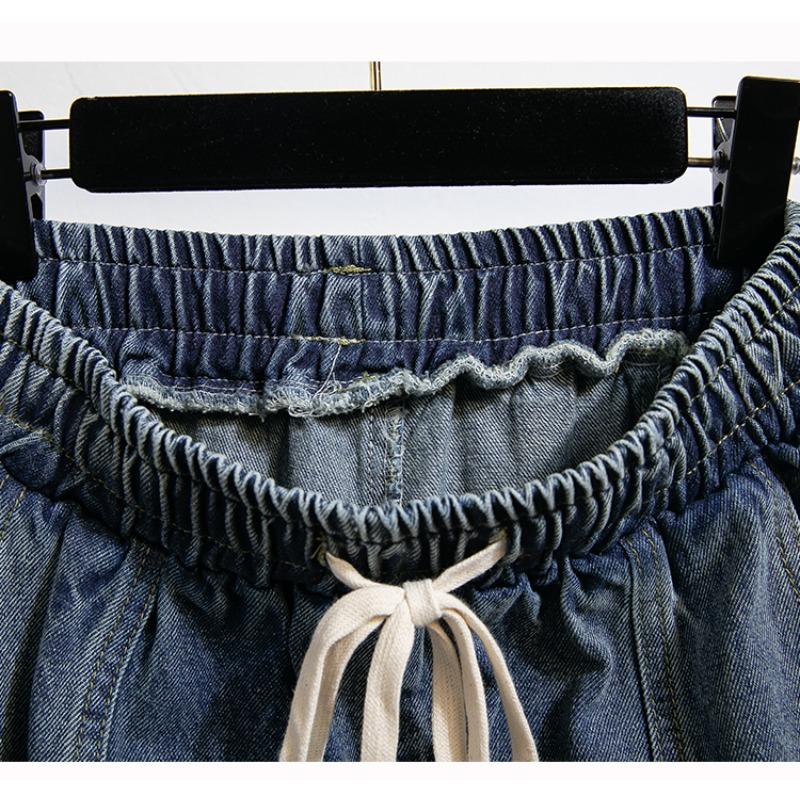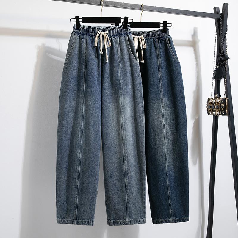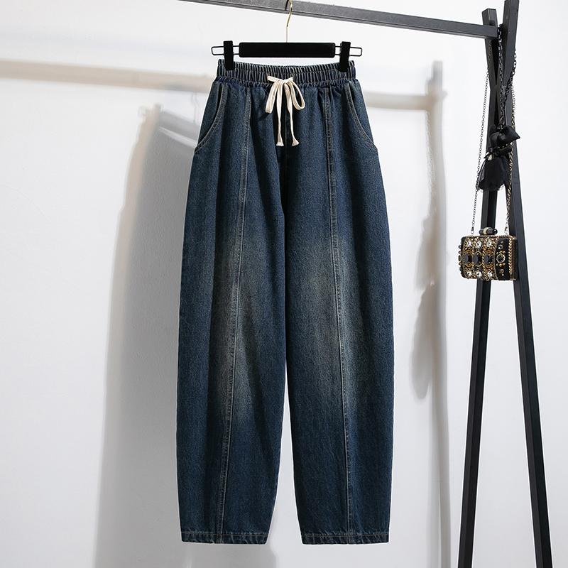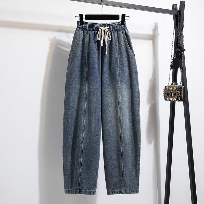 DIMANAF Большой размер 2025 Женские длинные брюки Летние свободные джинсы С высокой талией Базовые брюки Эластичная талия 5XL