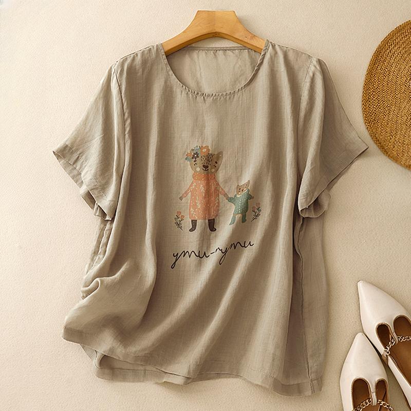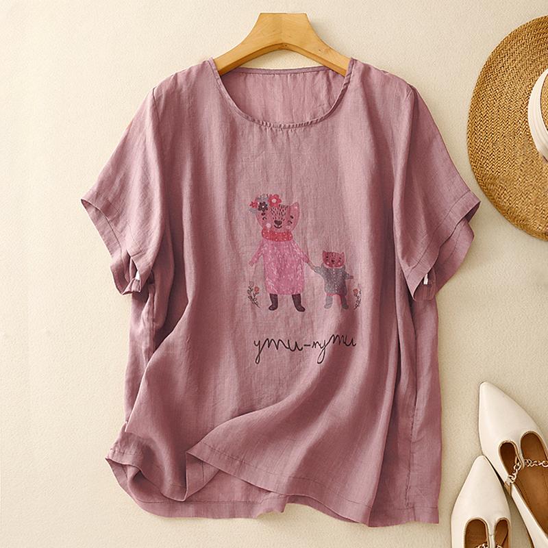 DIMANAF 2025 Женская летняя футболка больших размеров с винтажным принтом из льна, базовые тонкие топы, футболки макси