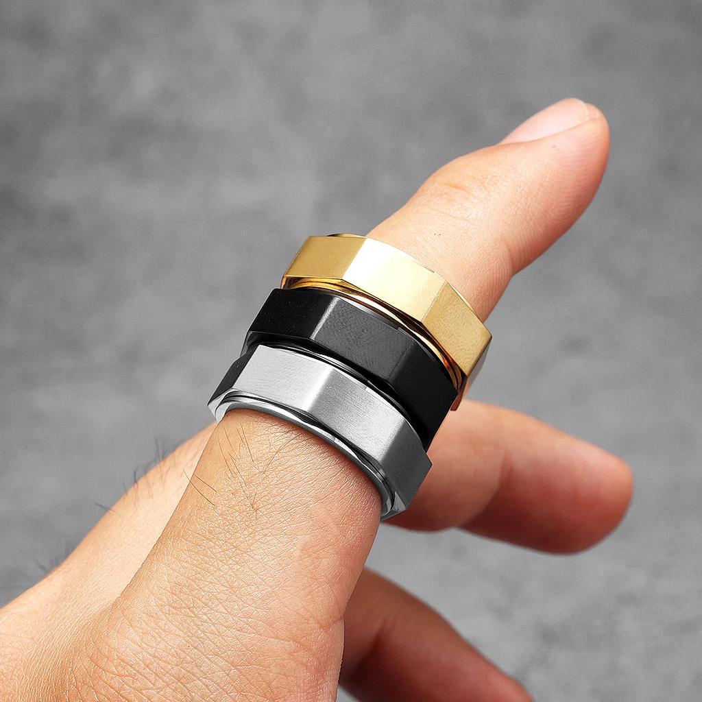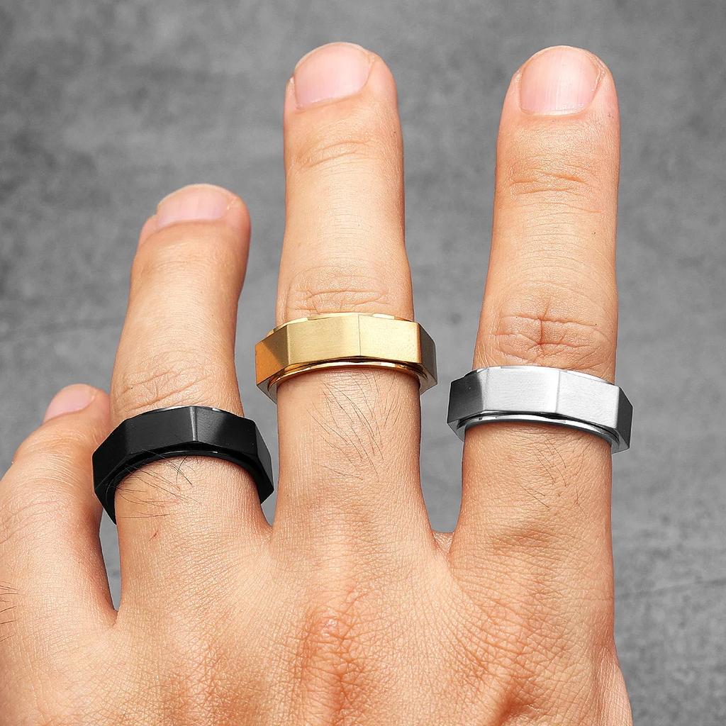 Геометрические огранки Винт Мужские Кольца Нержавеющая Сталь Винтаж Панк Простые Роскошные Женские Ювелирные Изделия Модные Аксессуары Подарок