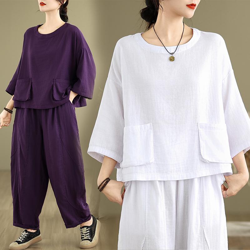 Dimanaf Плюс Размер 2025 Летние Брючные Костюмы Женские Однотонные Комплекты Костюмы Свободные Рубашки Длинные Шаровары Повседневная Одежда — купить товар онлайн с бесплатной доставкой до всему миру!
