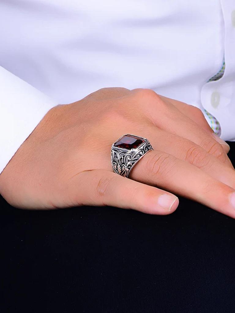 Винтажное турецкое кольцо-печатка ручной работы для мужчин и женщин, старинное резное кольцо с красным желтым цирконием, инкрустированное в стиле панк-мотоцикла