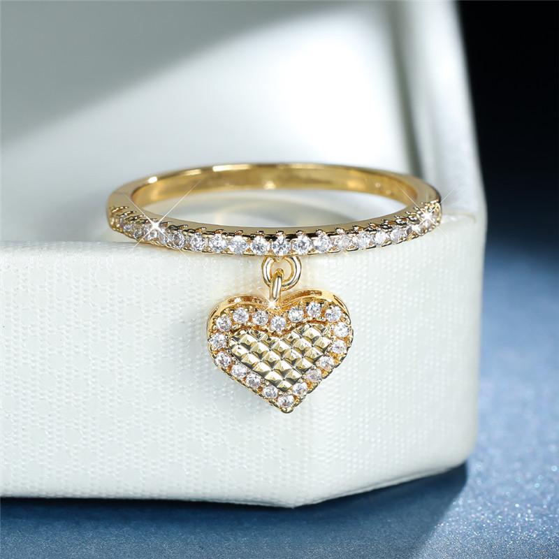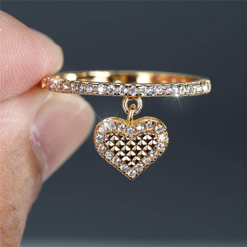 Милое женское хрустальное сердечко-подвесное кольцо, модное золотое обручальное ювелирное изделие, обручальные кольца с камнем циркония для женщин