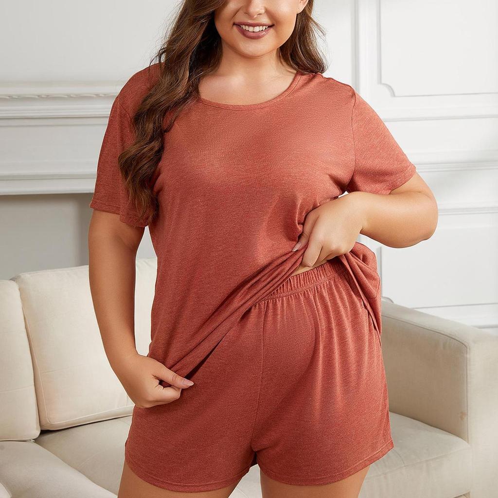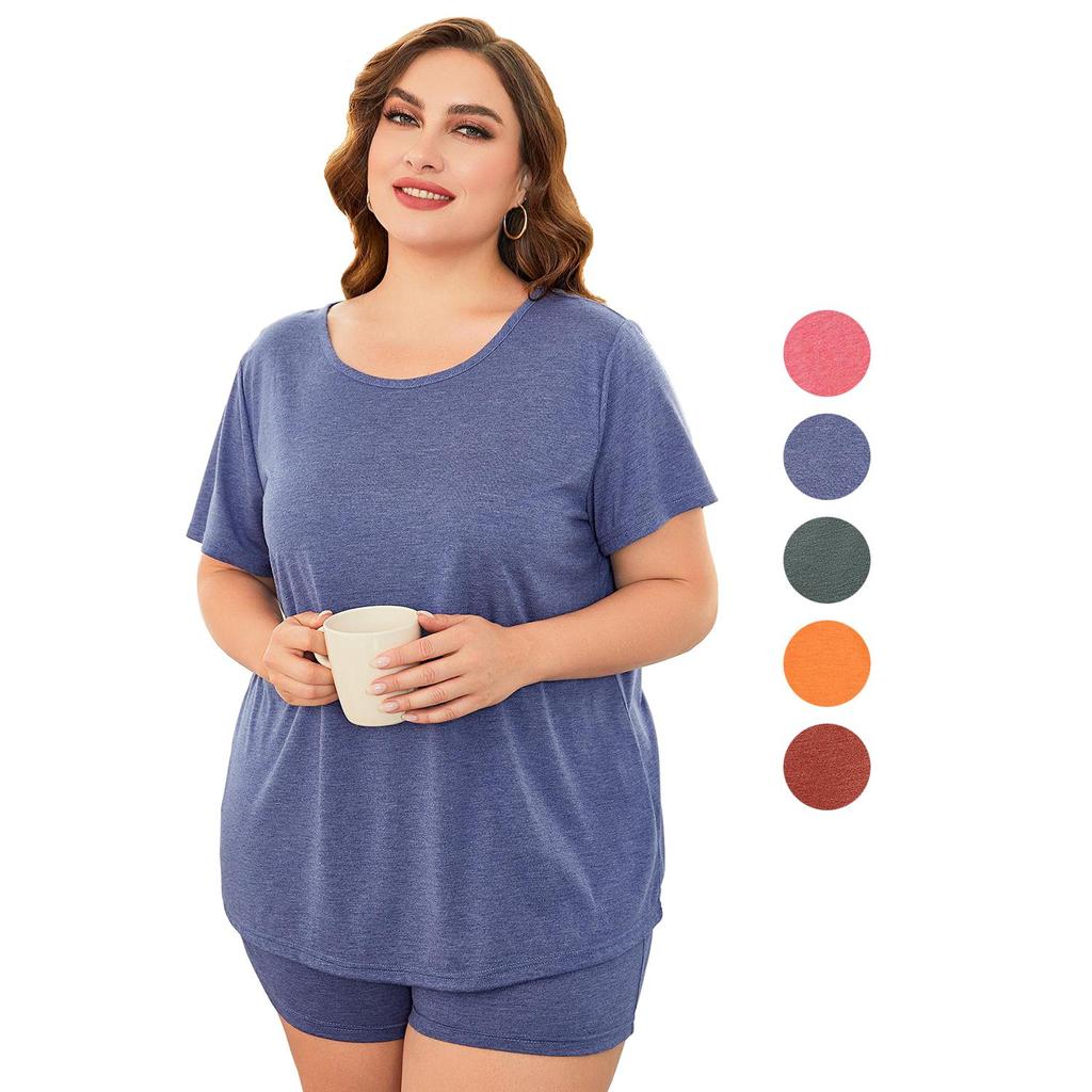 Женские спальные костюмы больших размеров с круглым вырезом, рубашкой с короткими рукавами и короткими брюками, летний пижамный комплект, одежда для сна большого размера