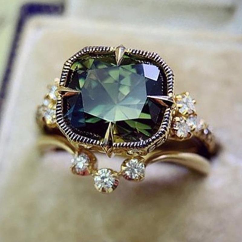 Набор колец Huitan Vintage Green Cubic Zirconie для женщин, золотистый цвет, темпераментные женские аксессуары для пальчиков, украшения для вечеринок