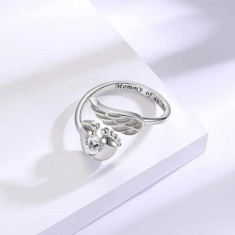 Huitan Mother Rings Best Gift for Mommy Crystal Heart CZ Luxury Color Angle Ring Birthday Anniversary Present New Jewelry
