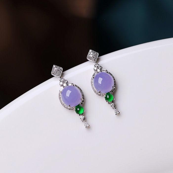Дизайнерские оригинальные новые инкрустированные ледяные фиолетовые халцедоновые круглые серьги в форме яйца, модные универсальные украшения для женщин с разными темпераментами