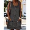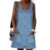 Модное джинсовое платье Дышащее платье на подтяжках Летнее джинсовое платье чистого цвета, прикосновение к коже