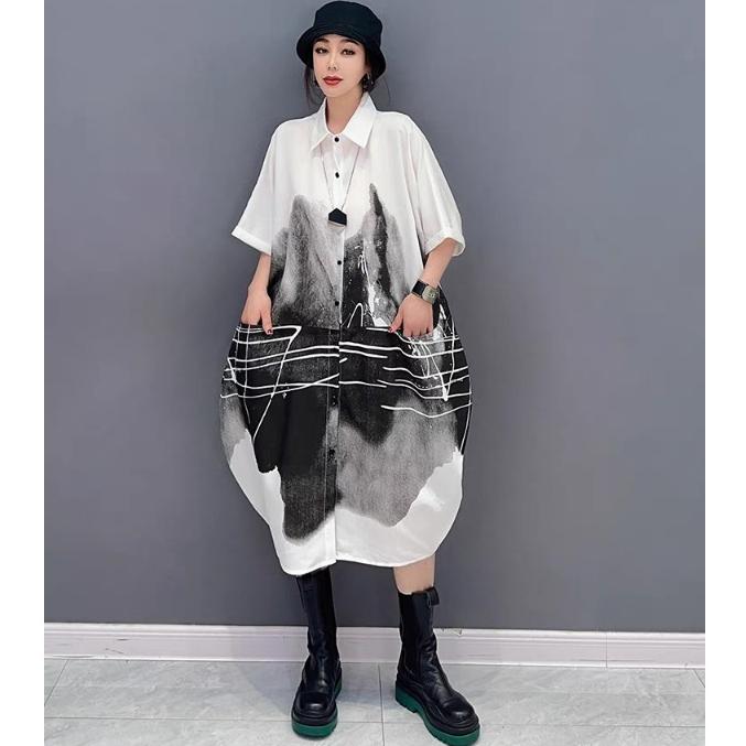 Dimanaf 2025 Летнее платье больших размеров для женщин, повседневное винтажное платье-рубашка, свободное базовое платье на пуговицах