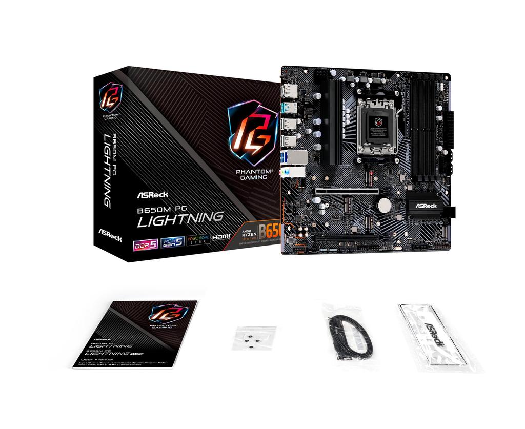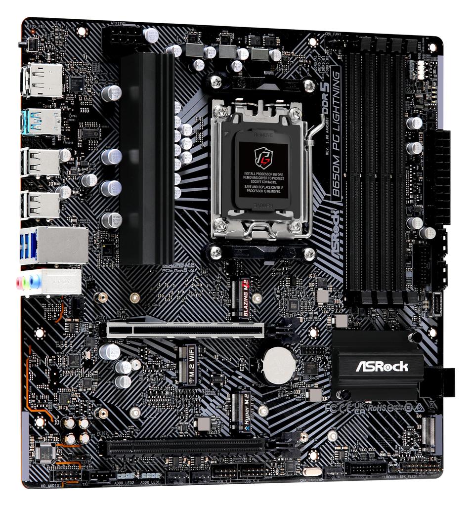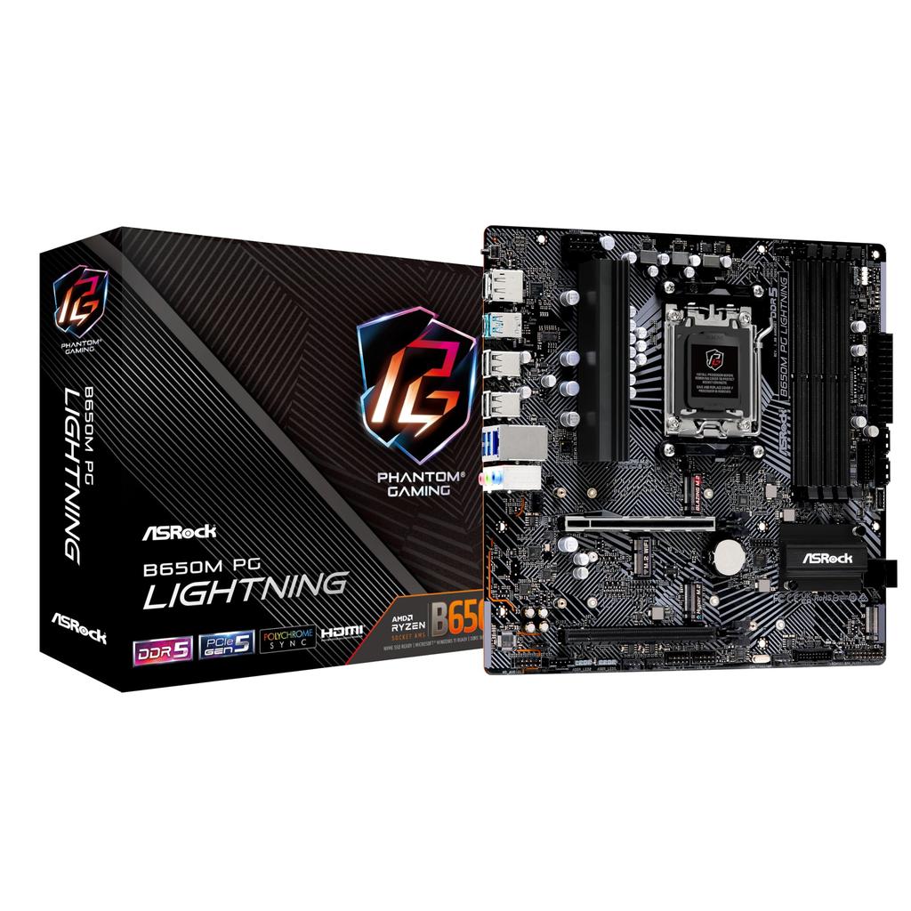 Материнская плата ASRock B650M PG Lightning совместима с процессором AMD Ryzen серии 7000 Материнская плата B650 Micro ATX Авторизованный дистрибьютор (Сокет AM5)