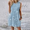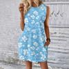 Женское повседневное и модное платье средней длины с круглым вырезом и без рукавов с принтом