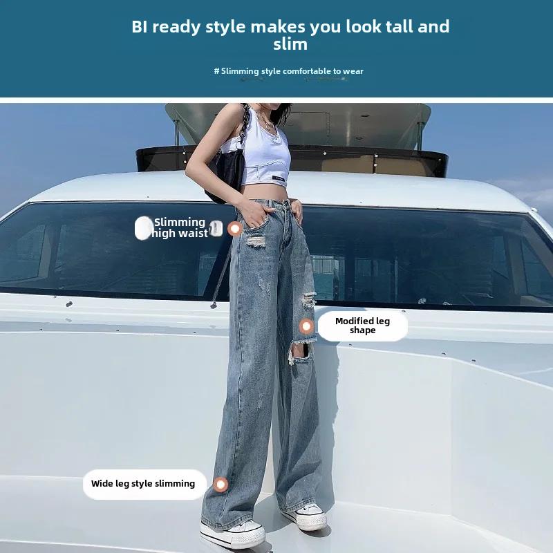 Женские джинсы свободного кроя с высокой талией и рваными краями — коллекция Лето 2023