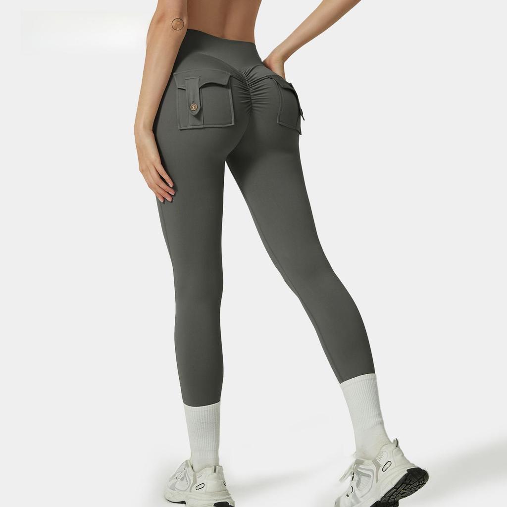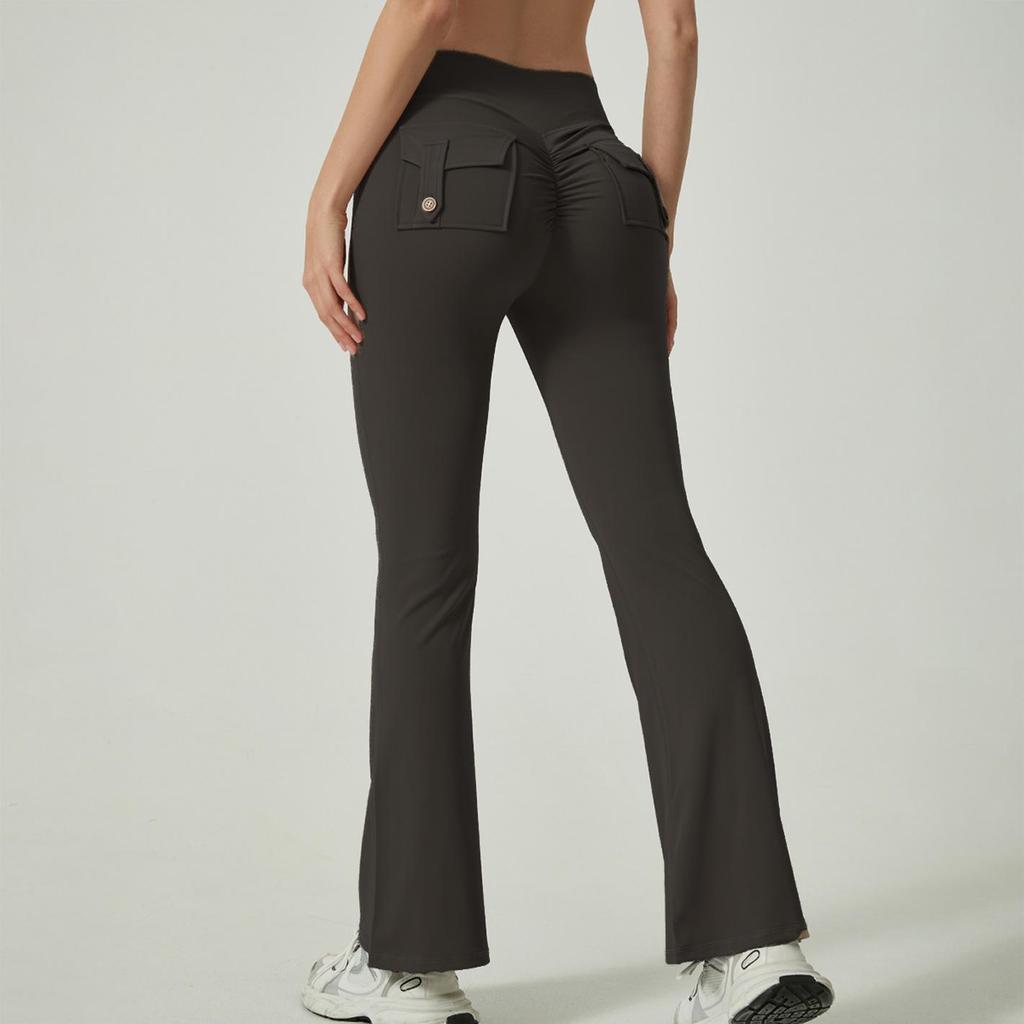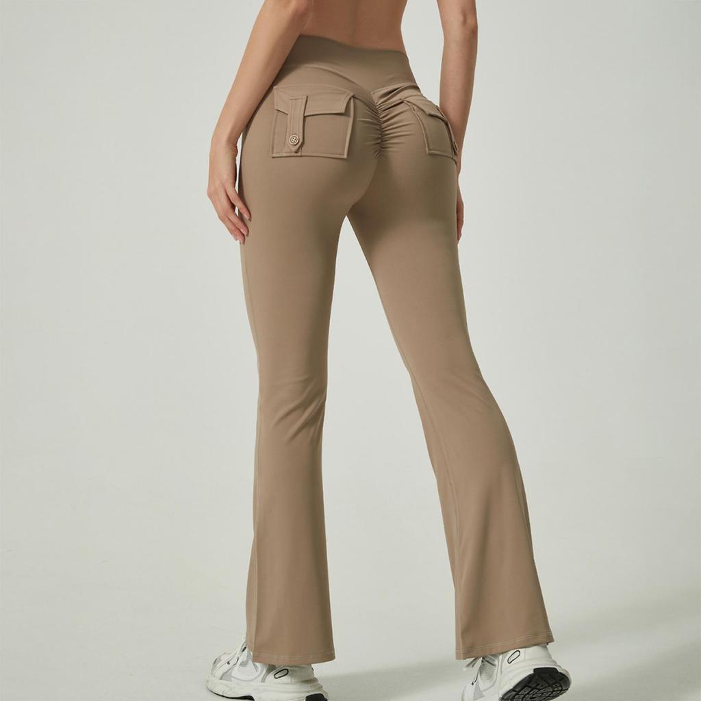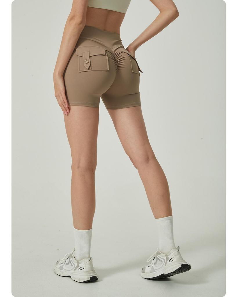 Европейские и американские шорты для йоги с высокой талией и карманами - женские расклешенные брюки для фитнеса с подтяжкой бедер