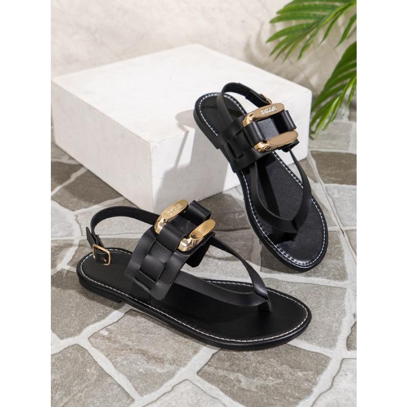 Летние новые удобные сандалии на плоской подошве с пряжкой и шлепанцами на носке, легкая женская обувь