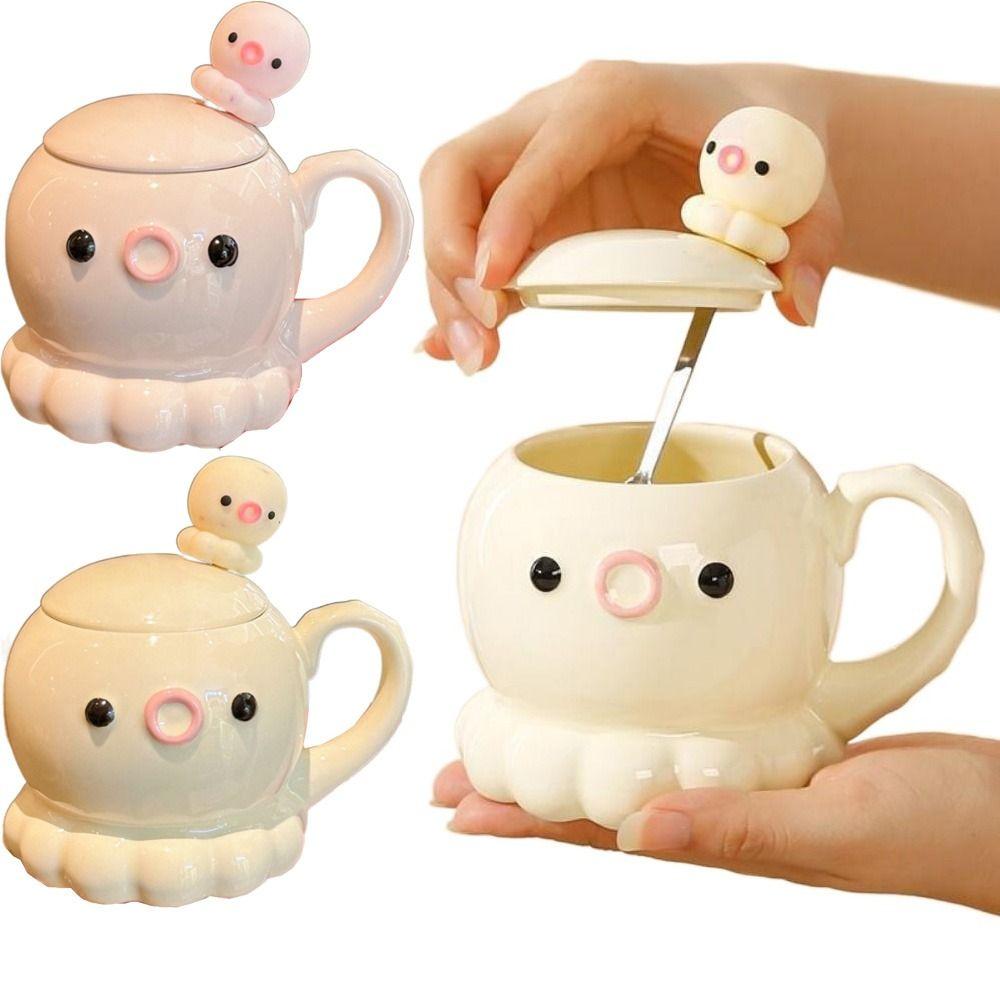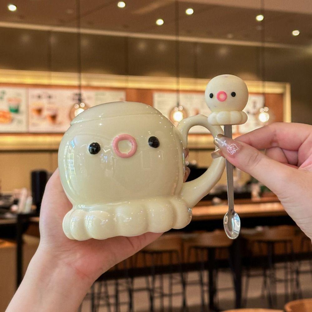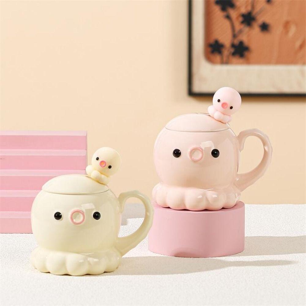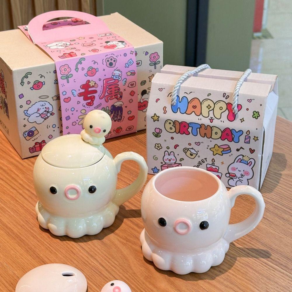 Comfortable Grip Ceramic Coffee Mug Heat Resistant Water Cup with Lid Birthday Gift