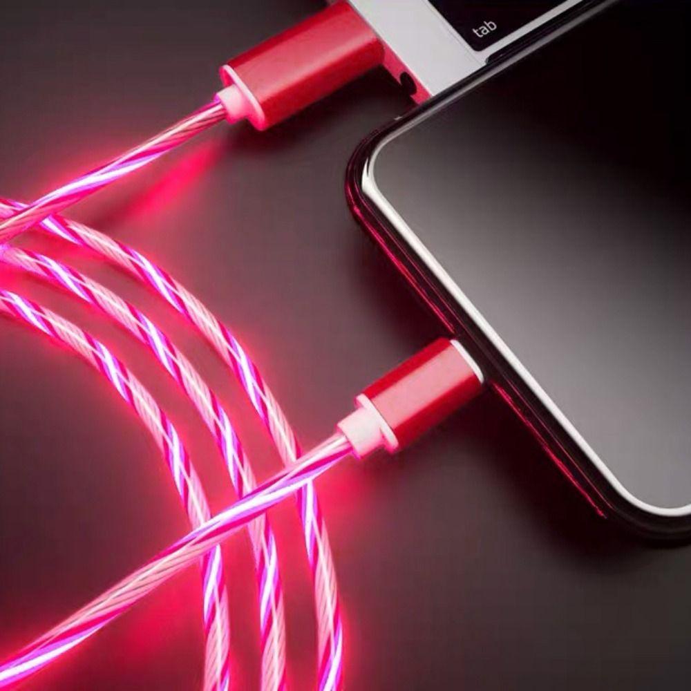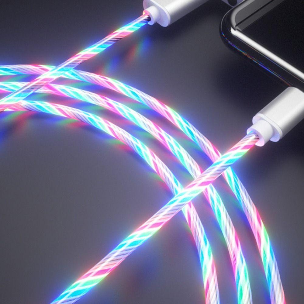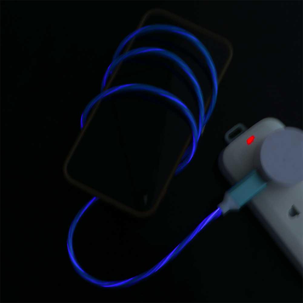 C-провод Светодиодный светильник Micro USB Type C Кабель для передачи данных Кабели для зарядки мобильных телефонов Светящийся кабель Провод для зарядки