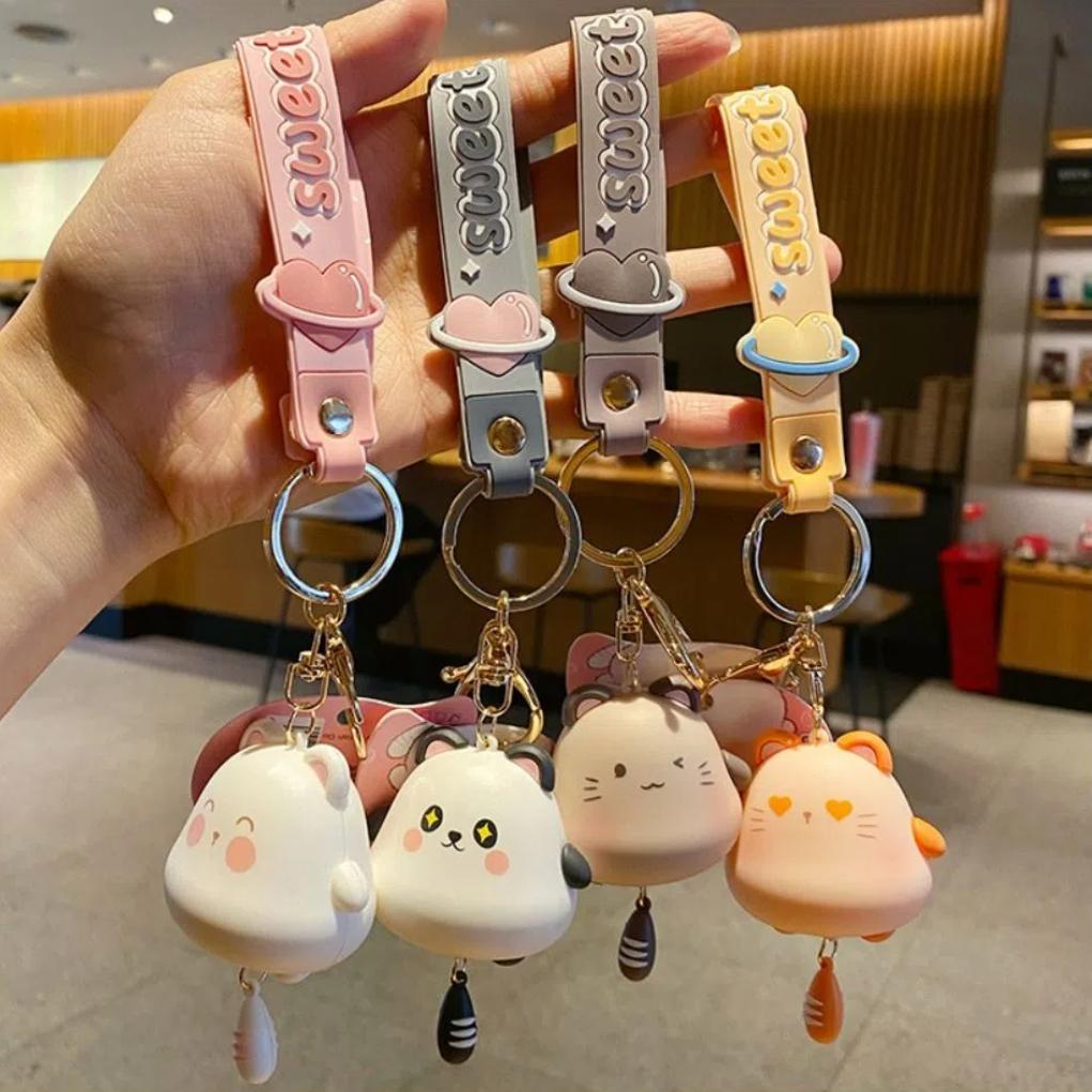 Panda Cute Cat Keyring Double-Sided Hamster Pendant Lovely Siamese Cat Keychain Gifts