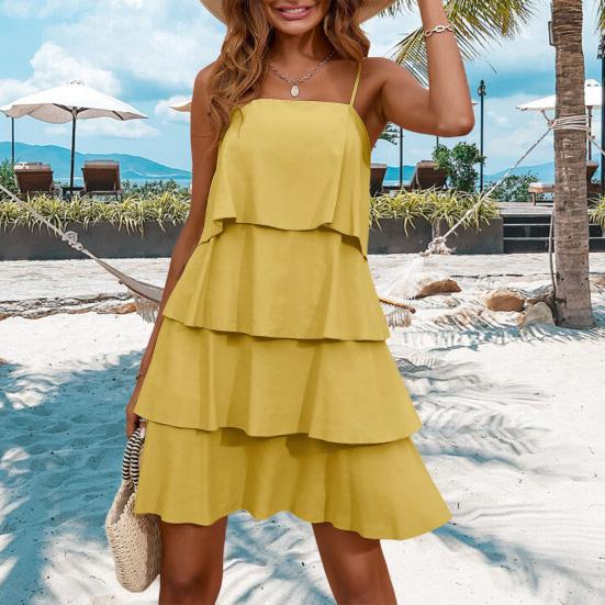Привлекательный свободный крой и оборчатый дизайн: Благодаря свободному силуэту на талии и изящным воланам это платье визуально удлиняет пропорции вашего тела, подчеркивая элегантность и женственность.. Откройте для себя изысканность с дизайном, который излучает очарование и изящество.