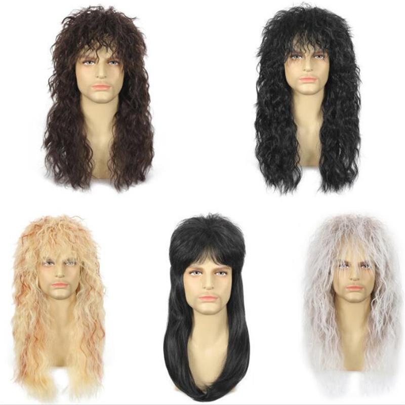 70-е 80-е рок-звезда косплей парик рокер черный коричневый светлые волосы панк пушистый пышные парики для вечеринки на Хэллоуин маллет рок-аксессуары