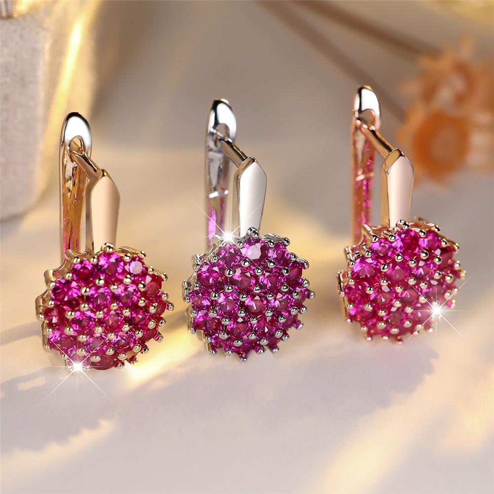 Серьги-кольца с круглыми цирконами и розовым красным кристаллом в виде подсолнуха для женщин, розовое золото, свадебные украшения в виде цветка, подарок на помолвку