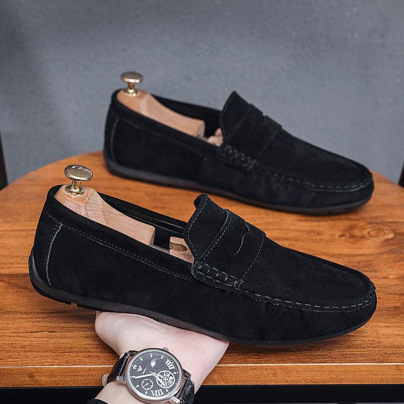 Обувь Doudou мужская 2025 года, новая весенняя обувь в британском стиле из замши с одной педалью, мужские мокасины, повседневные кожаные туфли