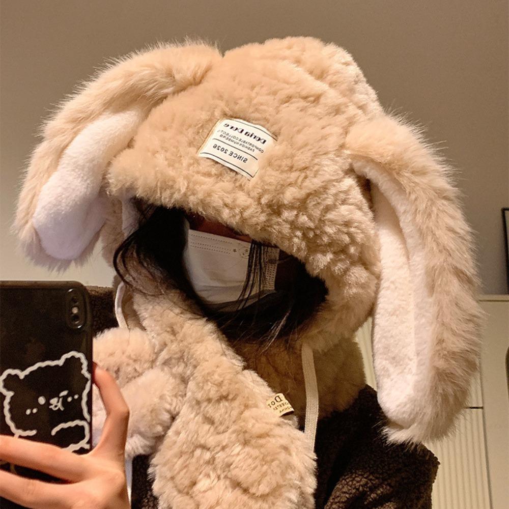 Warm Plush Bunny Scarf Soft Lop Ear Rabbit Hat Fashion Outdoor