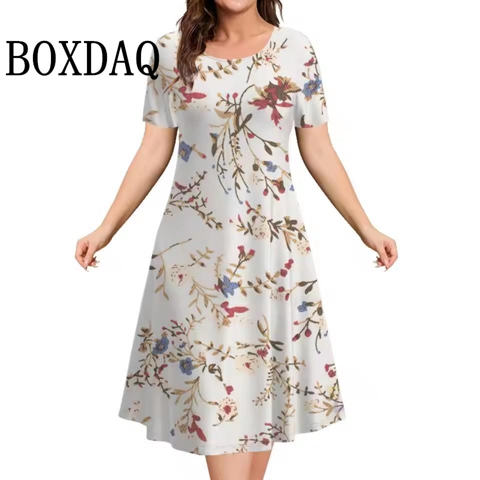 Новые платья 2025 Женские платья-сарафаны с 3D-цветочным принтом и короткими рукавами Летние повседневные платья-пуловеры Модные свободные женские платья