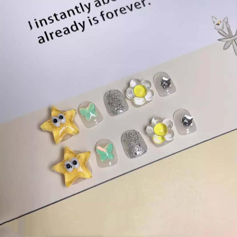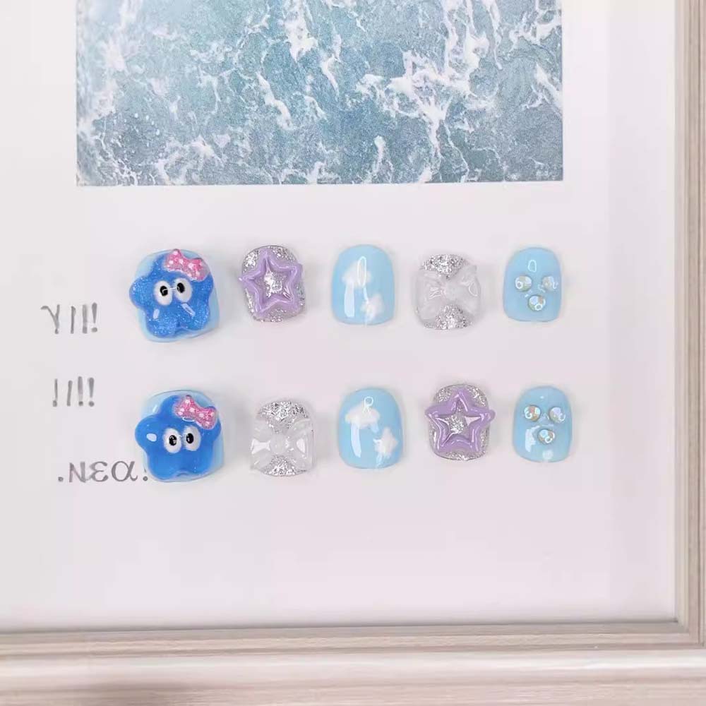 Накладные ногти для детей в форме морской звезды, короткие, квадратной формы, для детей, накладные ногти, материал для маникюра