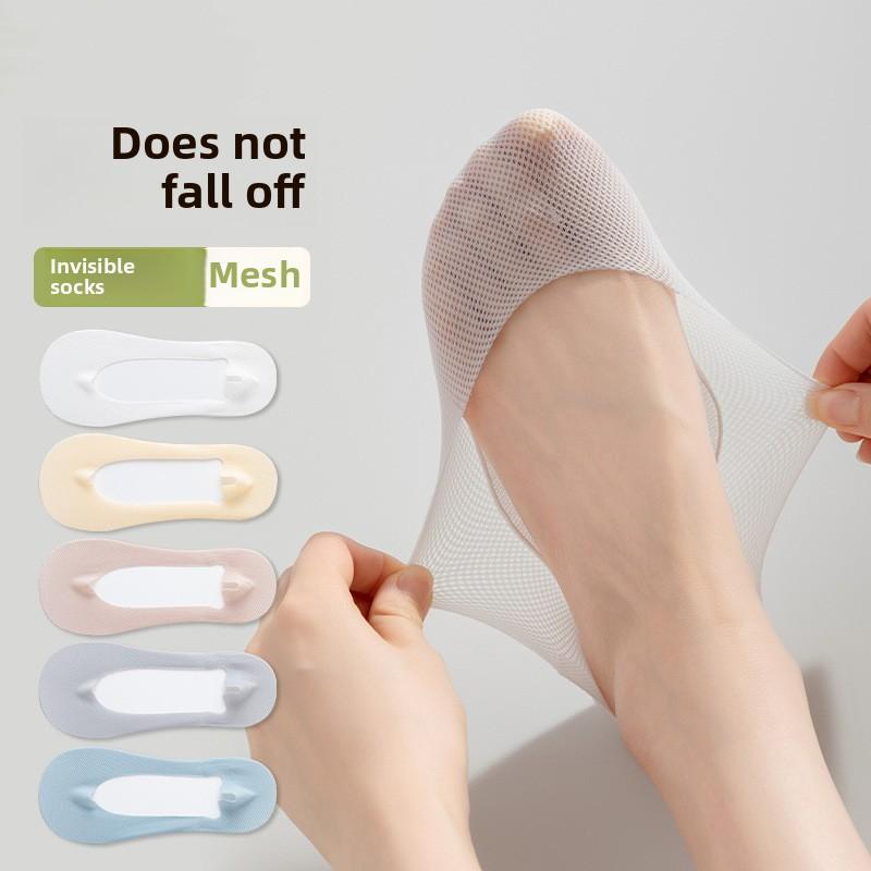 5 пар женских хлопковых летних тонких сетчатых дышащих впитывающих пот нескользящих носков с невидимыми носками — купить товар онлайн с бесплатной доставкой по всему миру!