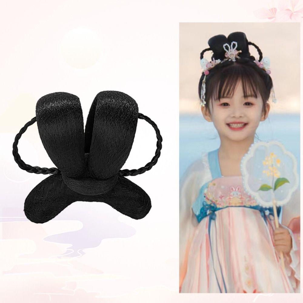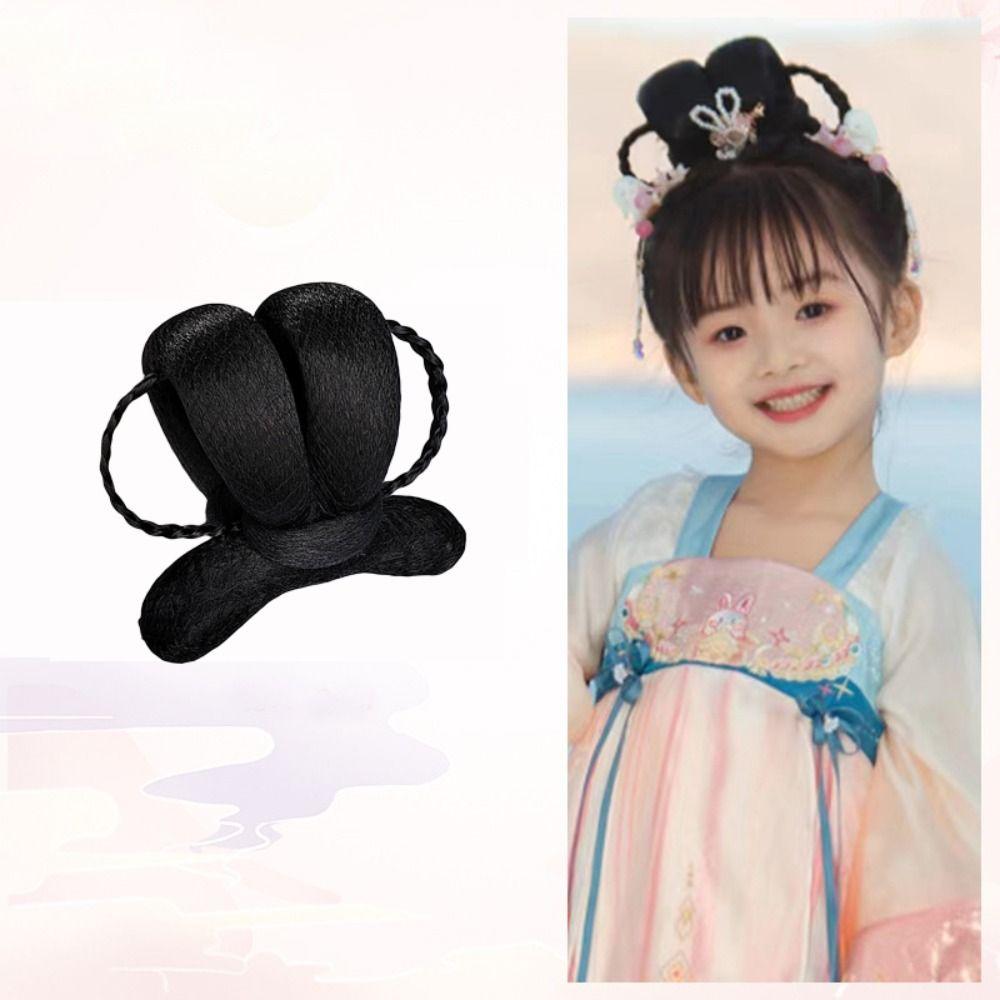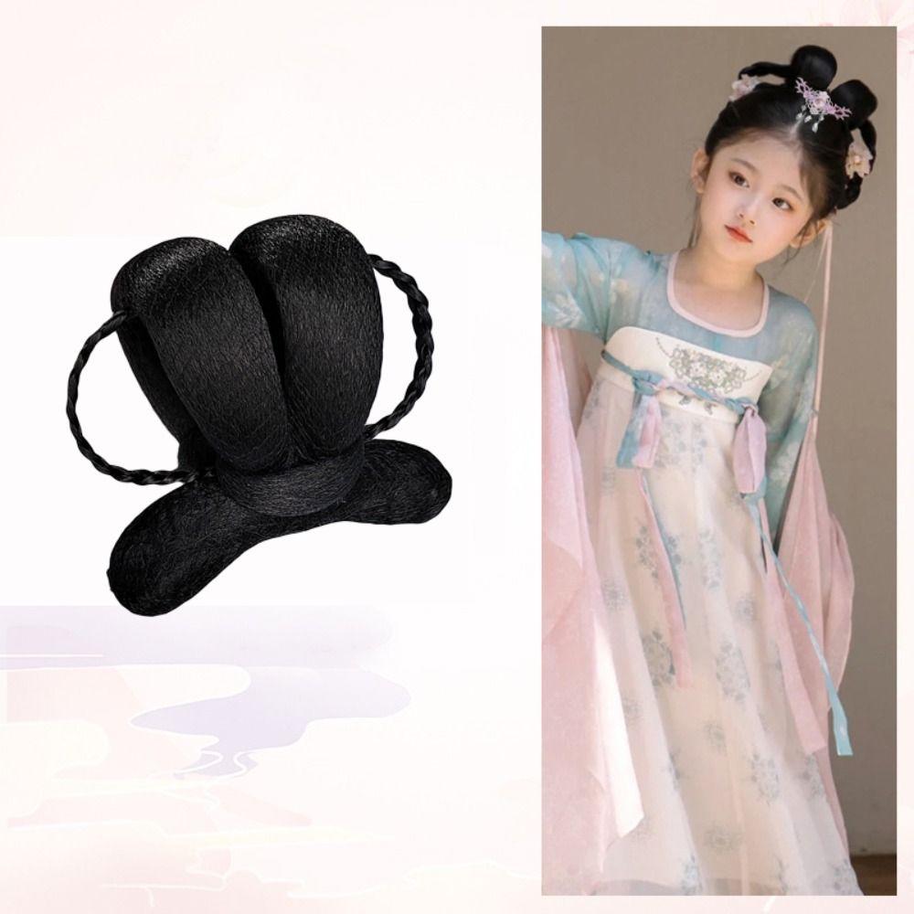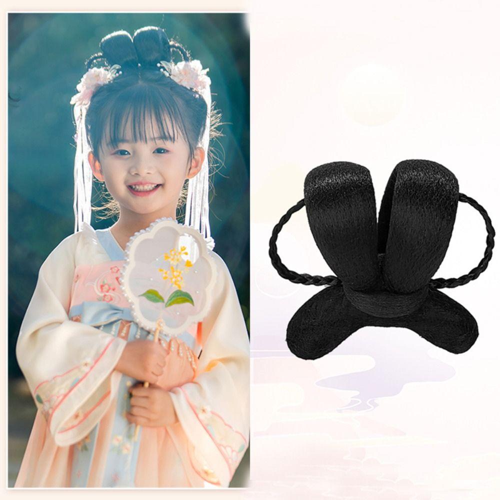 Детский головной убор принцессы, шиньон для волос для девочек в стиле ханьфу, детская косплей-парик для ханьфу, прическа в китайском стиле