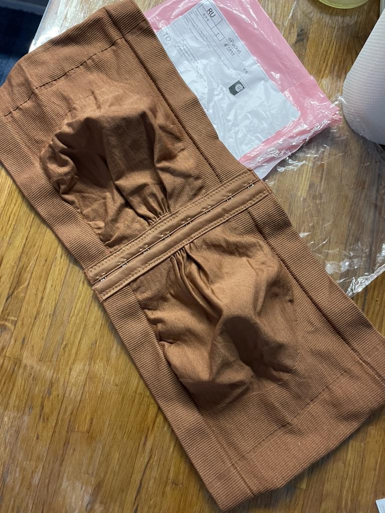 С размером не угадала…кому нибудь отдам. На внутренних швах торчат нитки ткани изделия…