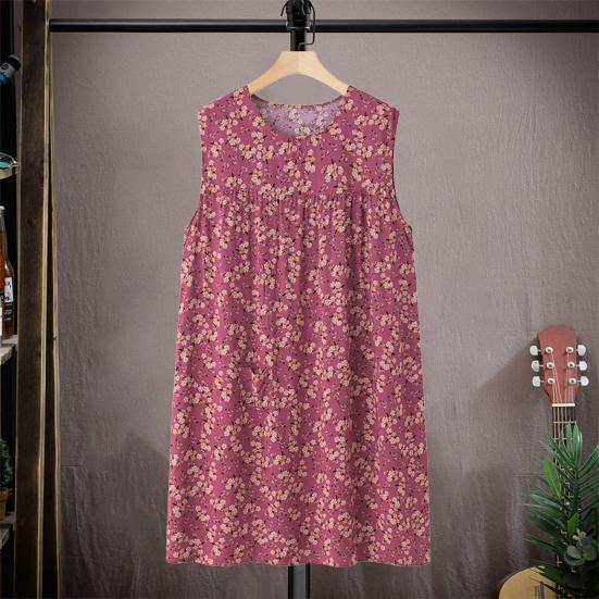 Женская свободная ночная рубашка без рукавов, повседневная сорочка, плиссированное платье для сна, летняя домашняя одежда с круглым вырезом и принтом