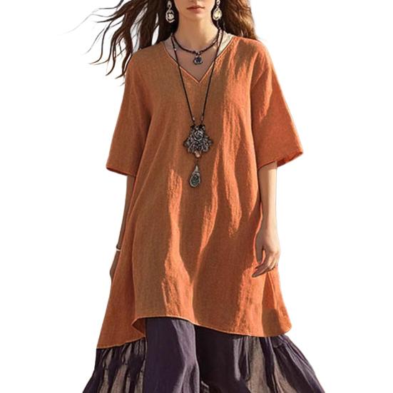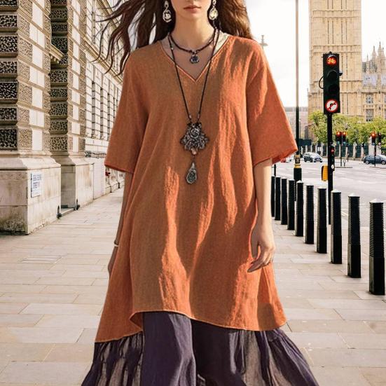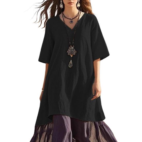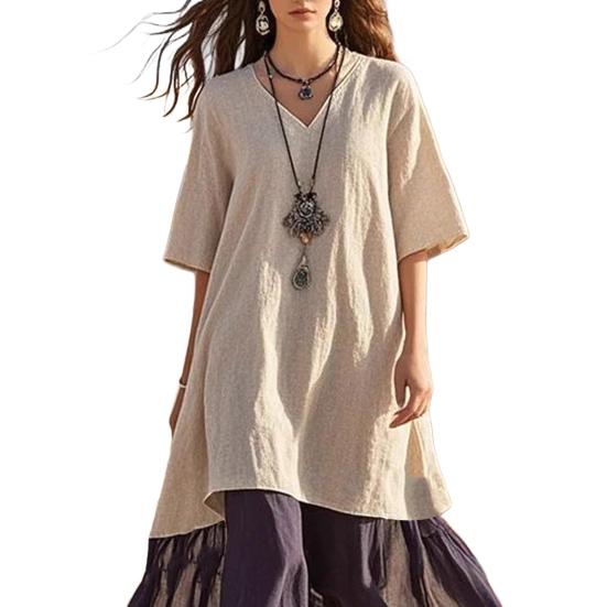 Комфортная элегантность: Ощутите комфорт и стиль благодаря пятиточечному рукаву и V-образному вырезу, которые обеспечивают свободный крой для комфортного и удобного ношения.. Оставайтесь стильными в течение всего дня.