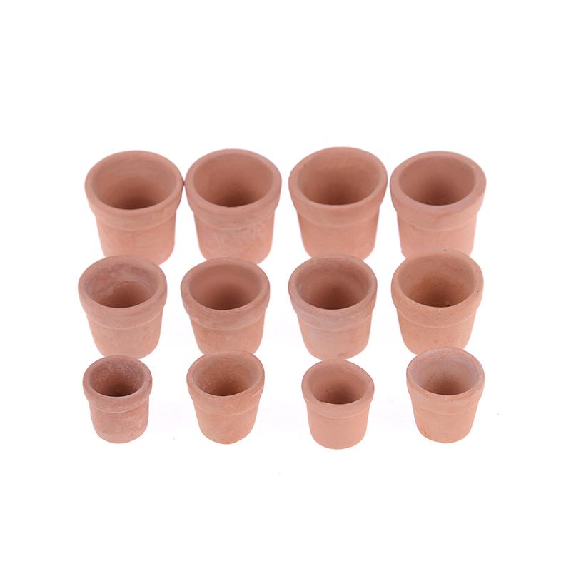 12шт Кукольный домик 1:12 Миниатюрный цветочный горшок ручной работы из красной глины для сада и дома