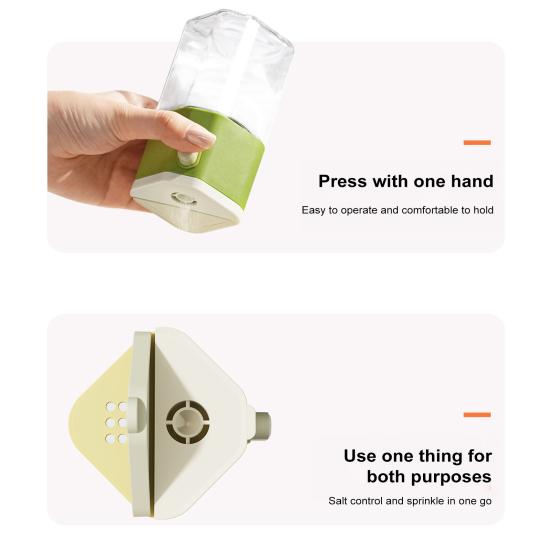 Представляем универсальную бутылочку для приправ, разработанную для точного контроля и удобства на вашей кухне.. Эта солонка оснащена кнопкой количественного измерения для точного высыпания соли, что идеально подходит для пожилых людей, беременных женщин, младенцев и любителей фитнеса.. Инновационная конструкция обеспечивает равномерное распределение соли и отличную герметизацию, предотвращая попадание влаги и образование комков.