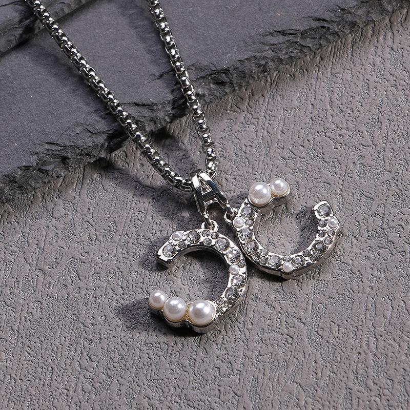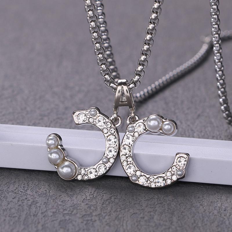 Ожерелье с двойной буквой C, украшенное бриллиантами, индивидуальный стиль, нишевый дизайн, модный трендовый кулон, свитер на весну/лето, цепочка для женщин
