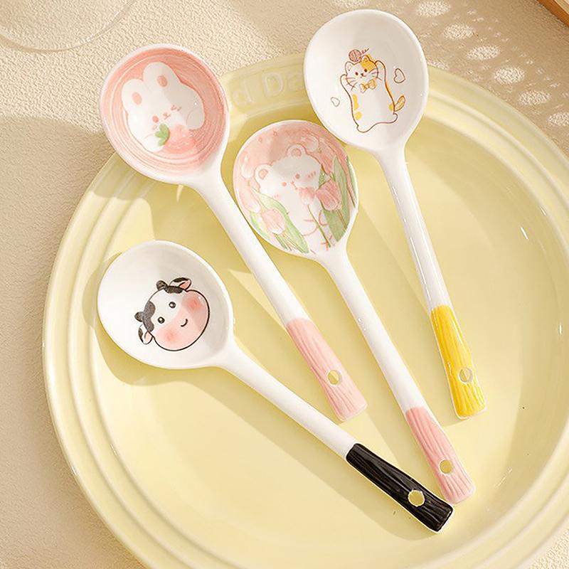 Керамическая ложка для супа, ложка для круп, милая бытовая посуда, расписанная кофейная ложка, ложка для варенья, подарочная ложка для десерта, кухонная утварь